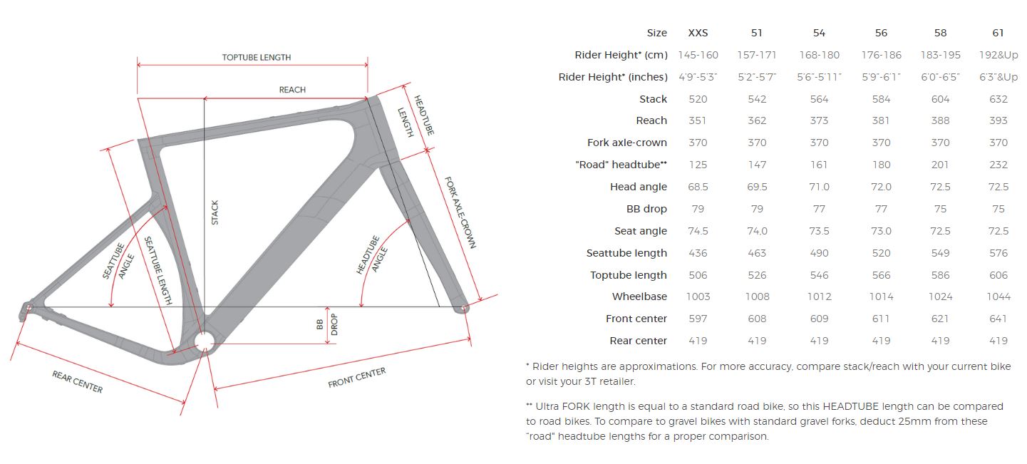• Styre: 3T Superergo Pro (XXS: 38 cm - 51: 40 cm - 54 & 56: 42 cm - 58 & 61: 44 cm)