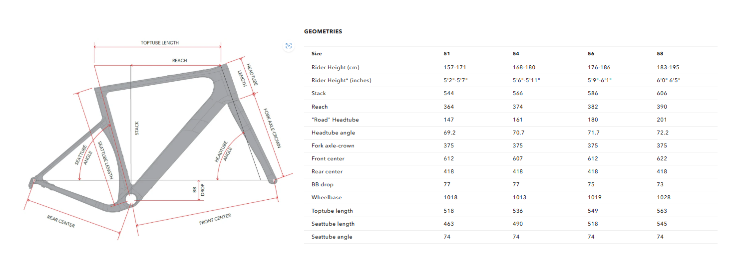 - Vevparti: SRAM Rival Wide AXS, 40T (51: 170 mm – 54 & 56: 172,5 mm – 58: 175 mm)