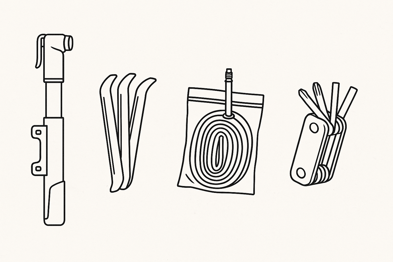 Tips: Vill du göra det enkelt? Skapa ett litet cykel-kit med allt detta i en sadelväska så är du alltid redo – utan att behöva packa varje gång.