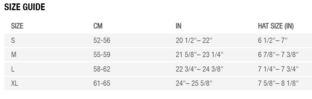 - Storlekar: S (52-56 cm), M (55-59 cm), L (58-62 cm), XL (61-65 - utvalda färger)