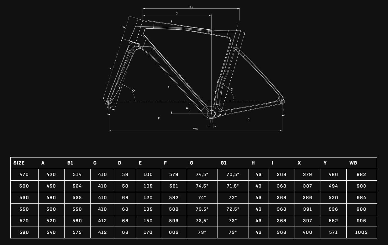 Ram: Specialissima COMP carbon, only electronic groupsets, fully internal cable routing, headset Acros ICR, direct mount brakes, BB-PressFit 86,5x41 sizes 47-50-53-55-57-59cm