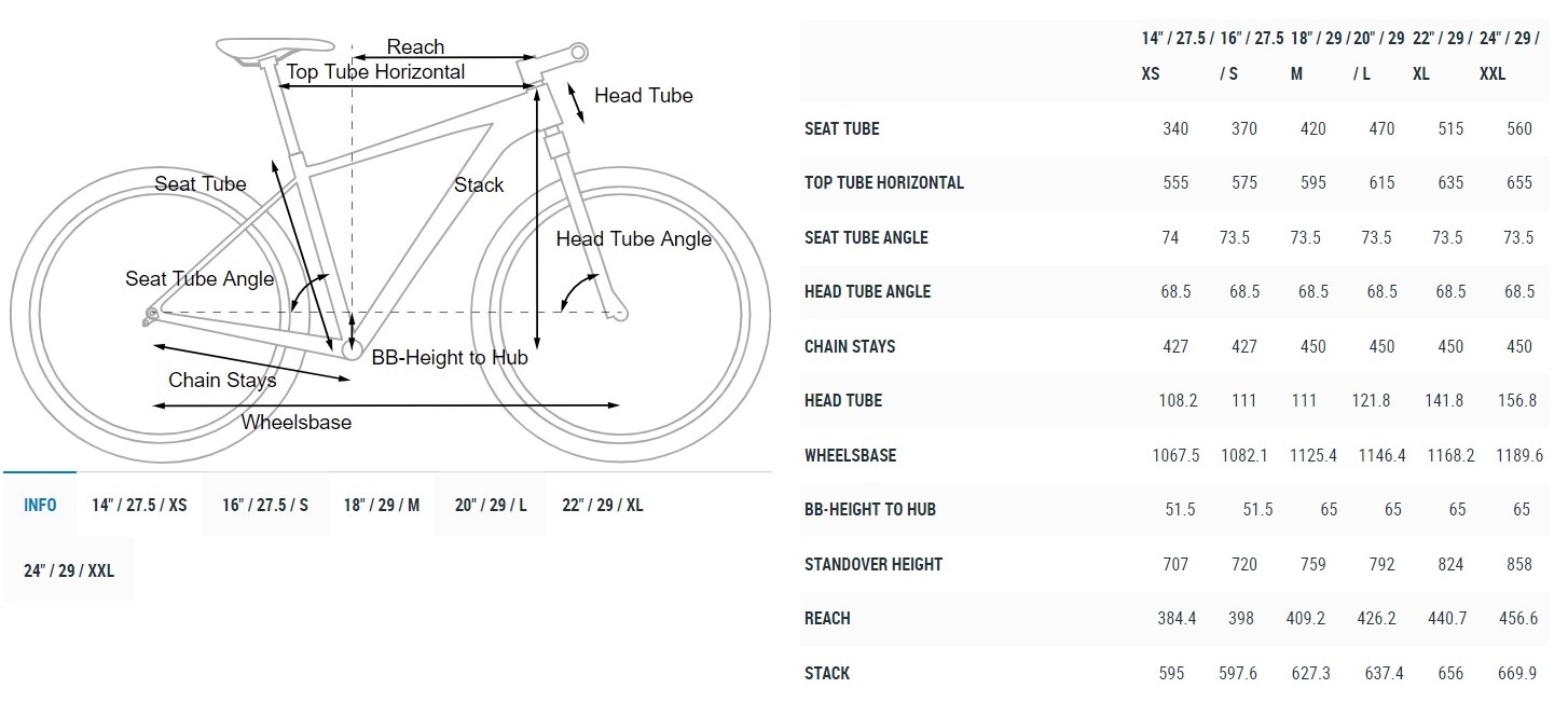 - Hjulset/fälgar: CUBE ZX20, 32H, Disc, XS/S: 27.5", M-XXL: 29"