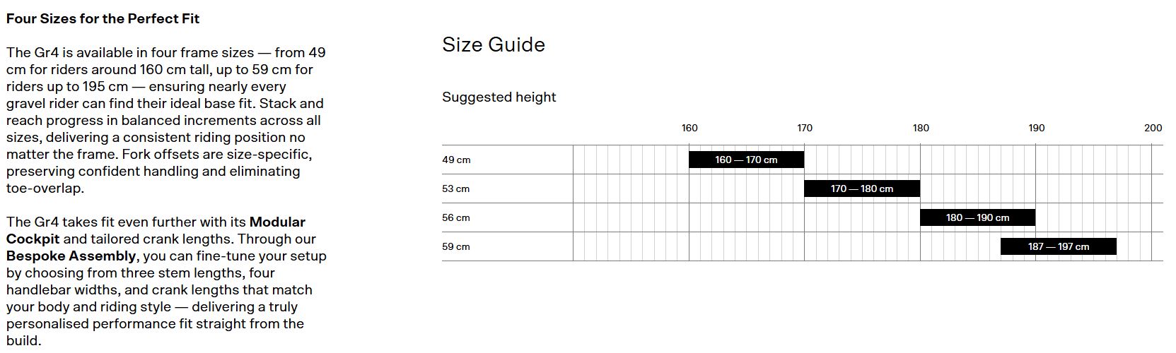 Med däckutrymme på upp till 57 mm (2.2”) är Gr4 byggd för MTB-storleksdäck som ger lägre rullmotstånd, bättre grepp, ökad komfort och ännu fler möjligheter för utforskning utanför allfartsvägar, samtidigt som den tillåter upp till 48T drev.
