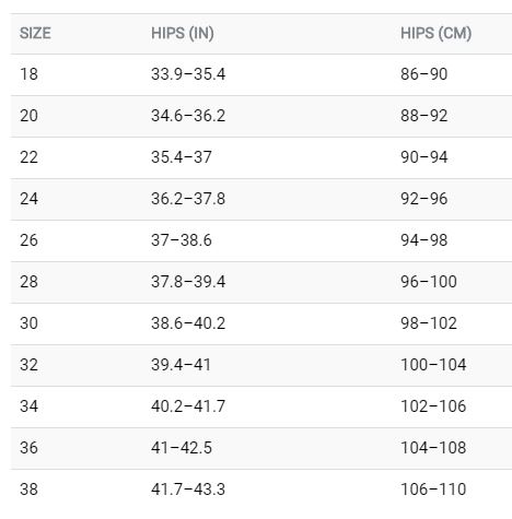 Storlekar: 20 - 32 (Vi rekommenderar att du väljer en storlek mindre än vad du gör i vanliga träningsshorts)