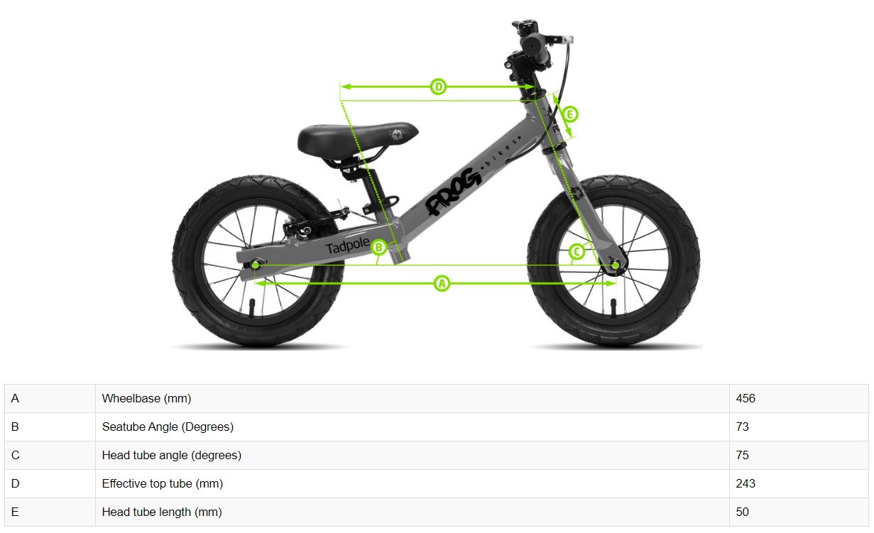Tadpole Plus är den perfekta första cykeln för småbarn, och är ett utmärkt sätt att introducera barnen för att cykla och utveckla en bra cykelbalans. Den har en lätt och robust ram och är lätt att bära för vuxna. Den har också bakbroms med bromsreglage på styret för att bekanta barnet med hur bromsning på cyklar görs. Den har en snabbkoppling som gör det enkelt att justera sadelns höjd, och styret har ett lås som förhindrar att barnet vrider styret under användning.