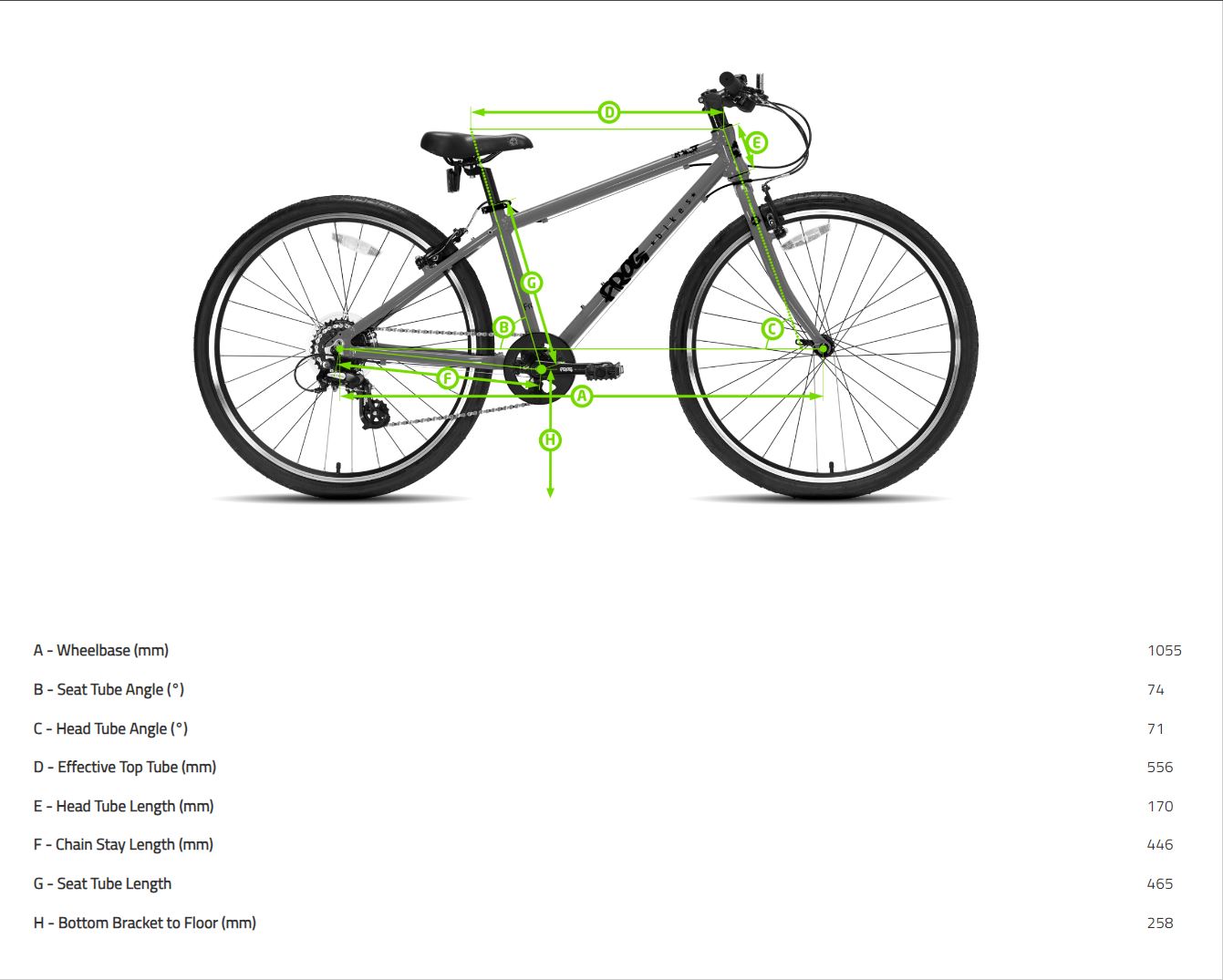 Frog 74 passar barn och ungdomar i åldern 12-14 år med cirka 74 cm benlängd. Frog rekommenderar inte att man köper en cykel som barnet kan växa ut till, eftersom det kan ha motsatt effekt genom att barnet börjar ogillar cykling eftersom cykeln blir för stor. Det bästa sättet att hitta rätt storlek är att mäta längden på barnets ben. Kolla in Frogs storleksguide och FrogFit-appen för att hitta den bästa storleken för ditt barn.