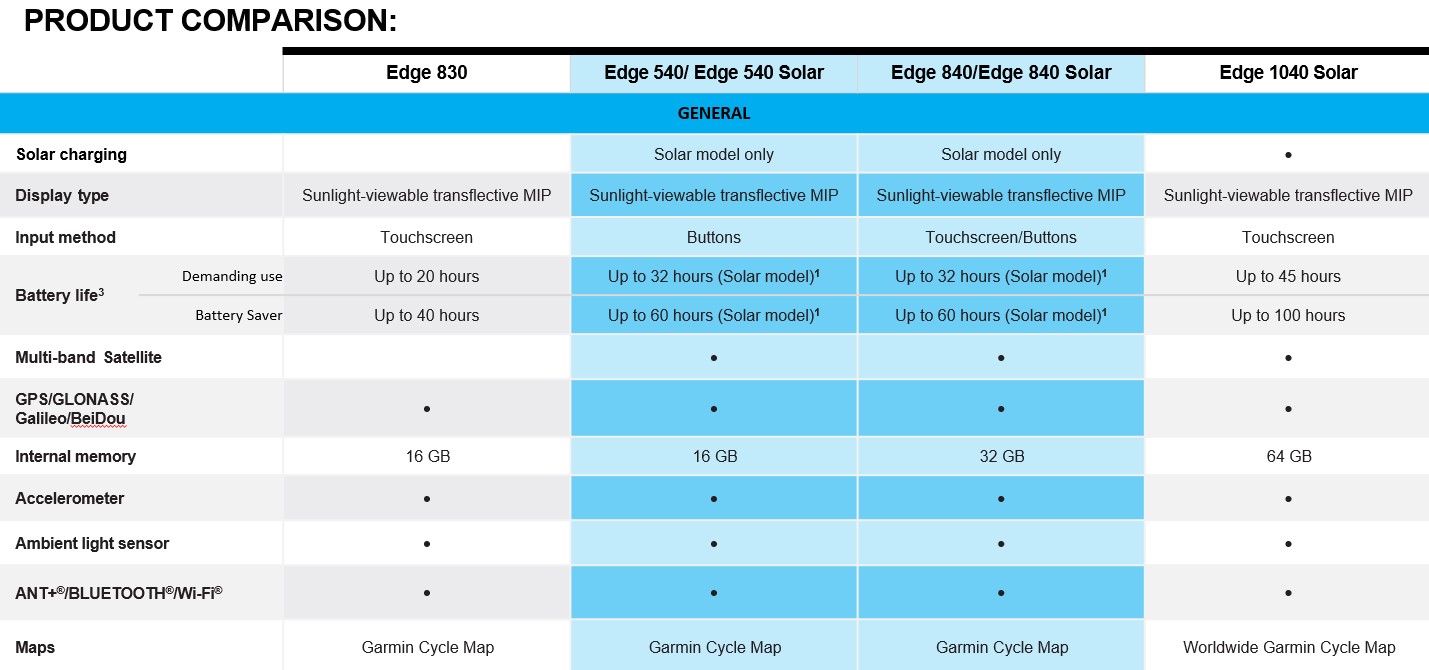 - Jämfört med Edge 540 har Edge 840 en pekskärm, dubbelt minne och fler förinstallerade kartor, samt några extra funktioner