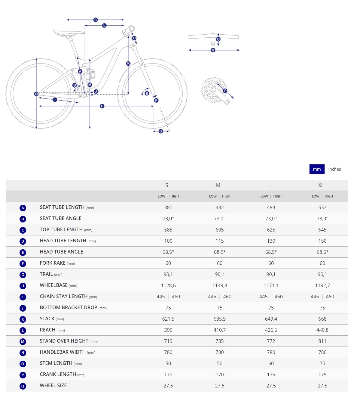 Cykeln har en aluminiumram som är både rejäl och lekfull. Cykeln är uppställd med stora 27,5" hjul med breda däck och en styv kolfibergaffel som svarar väldigt bra när man trycker lite i pedalerna. I övrigt är cykeln utrustad med ett brett styre med bra handtag, hydrauliska skivbromsar och modernt växelsystem från Shimano.