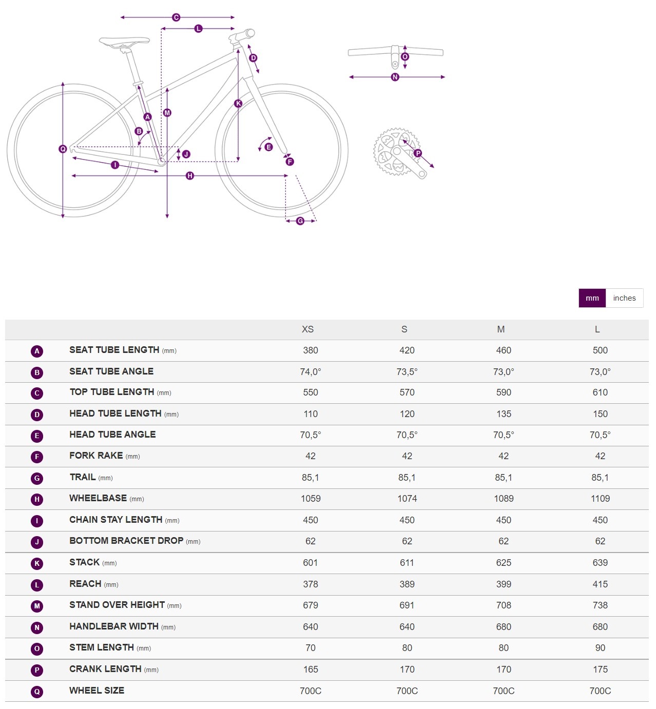 - Vevparti: Forged alloy, 30/46 XS:165mm, S:170mm, M:170mm, L:175mm