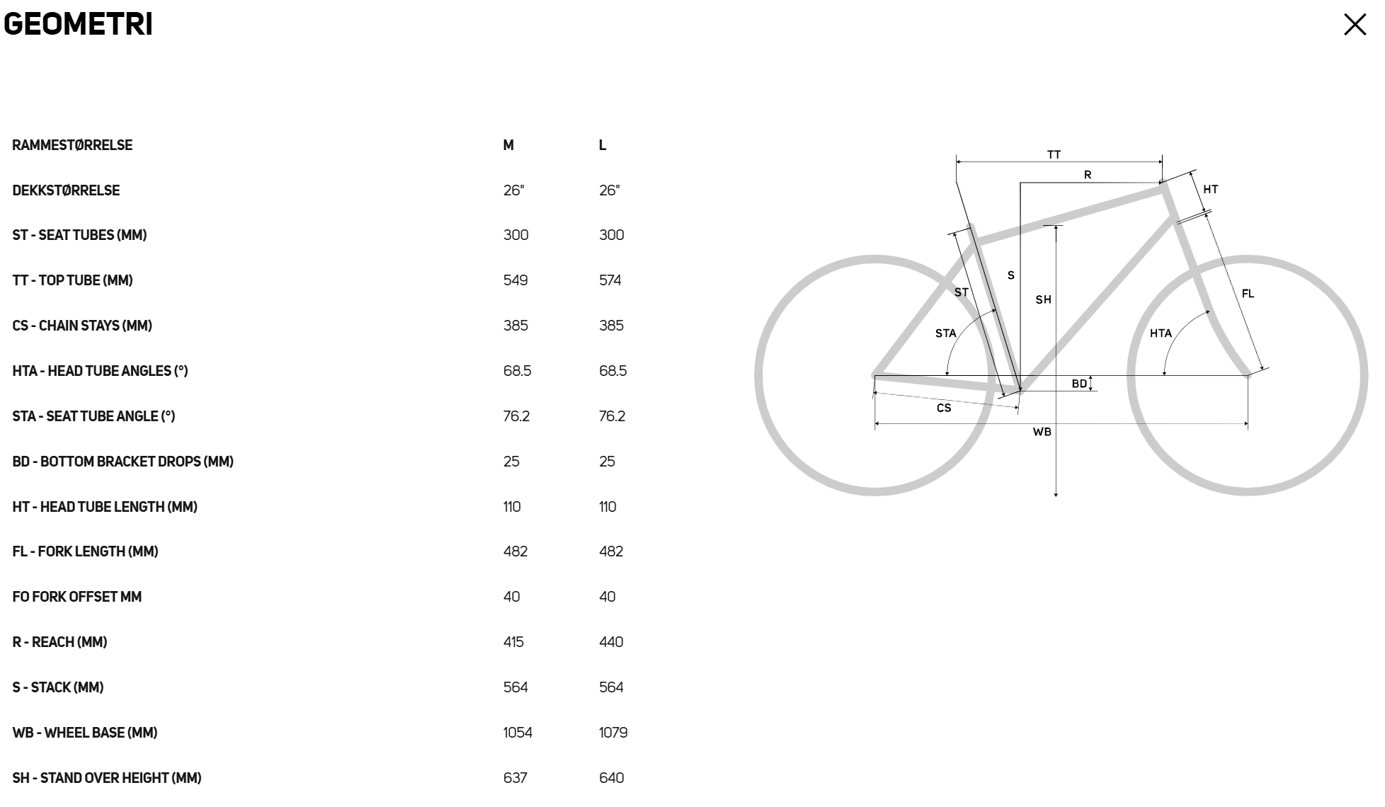 - Ramstorlekar: M, L