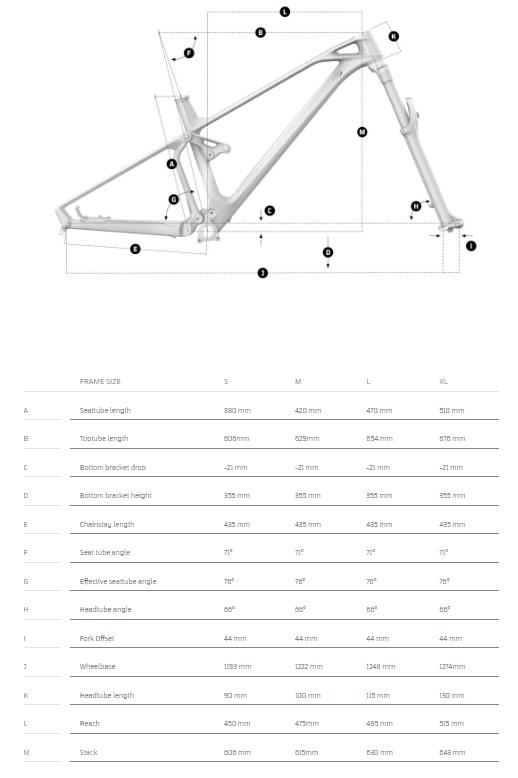 axle, 73mm BSA bottom bracket, dedicated 1x drivetrain design, telescopic