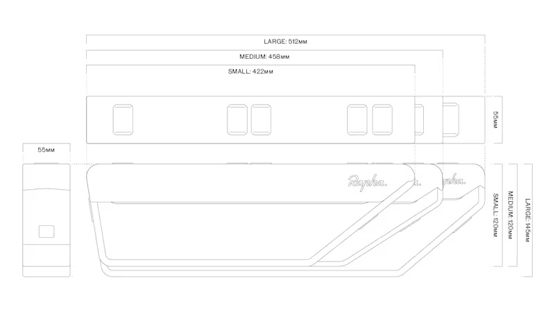 - Dimensioner - stor: 512 mm x 145 mm x 55 mm