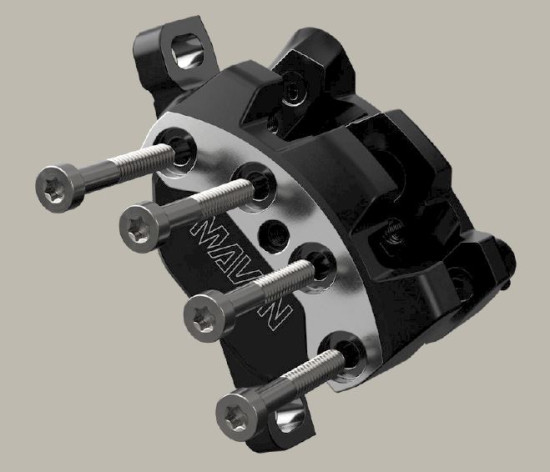 Jättestempel för gigantisk kraft: Mavens bromsok är oansenliga med sina fyra kolvar på 19,5 mm och 18 mm. Detta ger mer kraft mot bromsbeläggen, vilket i sin tur betyder mer friktion och bättre bromsning med mindre ansträngning.