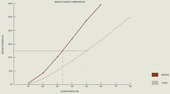 SSRAM Maven producerar nästan 50% mer kraft än en av de mest kapabla bromsarna någonsin, SRAM Code.
