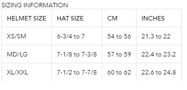 Storlek: XS/SM (54-56 cm), MD/LG (57-59 cm), XL/XXL (60-62 cm)